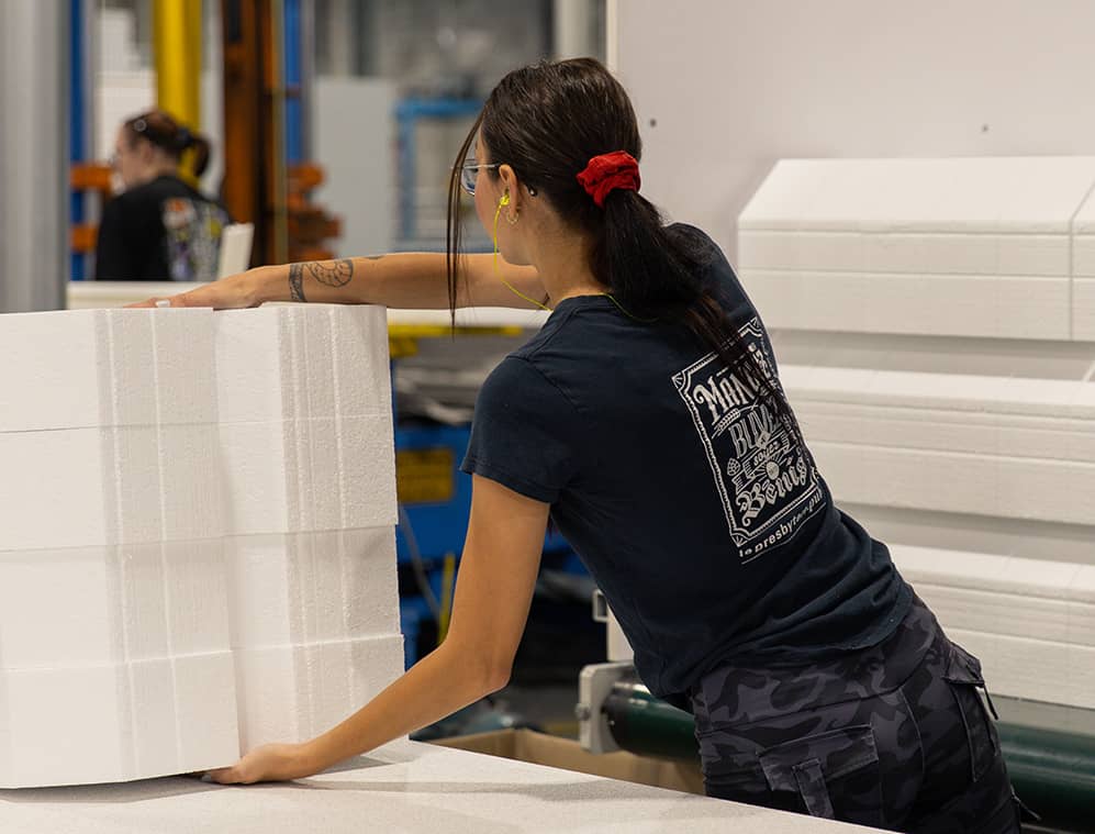 Grâce à nos technologies avancées, les pièces post-consommation sont récupérés et recyclés en nouvelle granules. Ces produits du recyclage s’intègrent parfaitement dans la fabrication de nouvelles pièces en plastique expansé ou en polypropylène rigide, permettant ainsi de rencontrer la norme CAN/BNQ 3840-100 pour les produits à contenu de plastique recyclé.